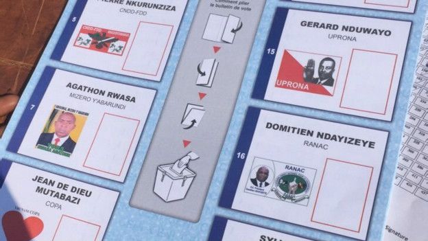 Karatasi za kura zinaonesha kuwa kulikuwa na wagombea nane wa kiti cha urais lakini wanne kati yao wameshathibitisha kuwa hawatashiriki uchaguzi huo wakipinga hatua ya rais Nkurunziza kuwania muhula wa tatu.